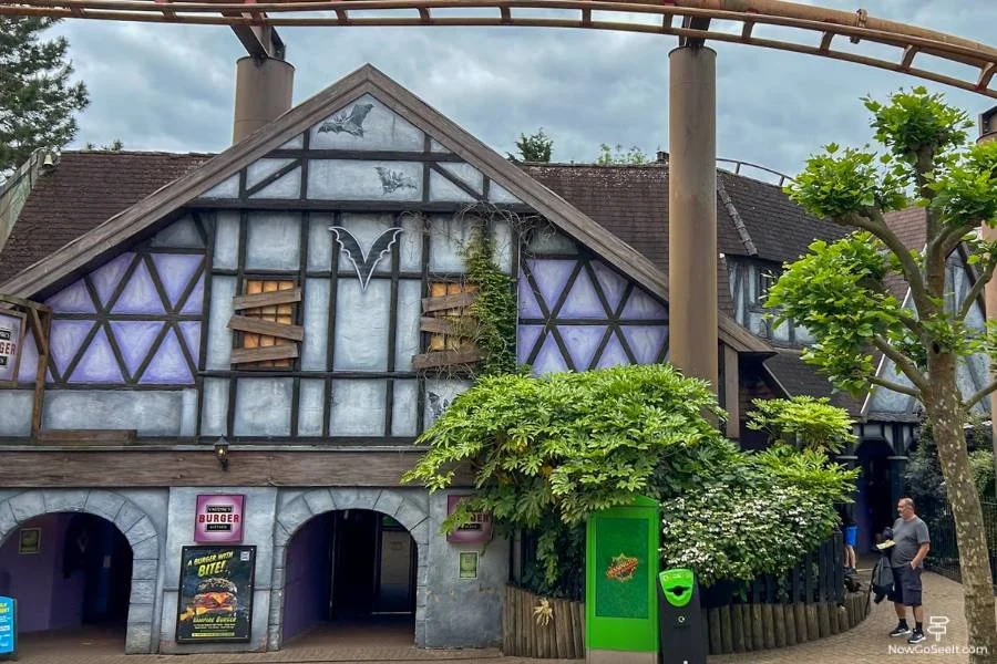 Located across from the Gruffalo River Ride Adventure and under the tracks of the famed Vampire coaster this themed eatery offers a variety of burgers. Try the Vampire Burger, a double burger served on black charcoal buns and topped with fiery Doritos and sweet chili jam. No cash accepted, card payments only.