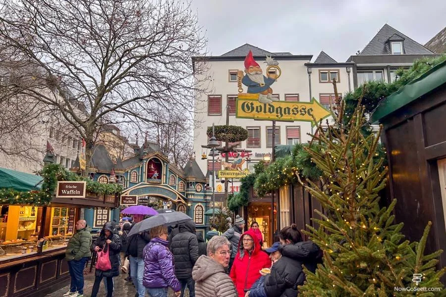 By the medieval Hahnentorburg gate, this fairy-tale village mixes strong shopping with family-friendly touches. Expect wooden huts, warm drinks, and a relaxed pace even at prime time.