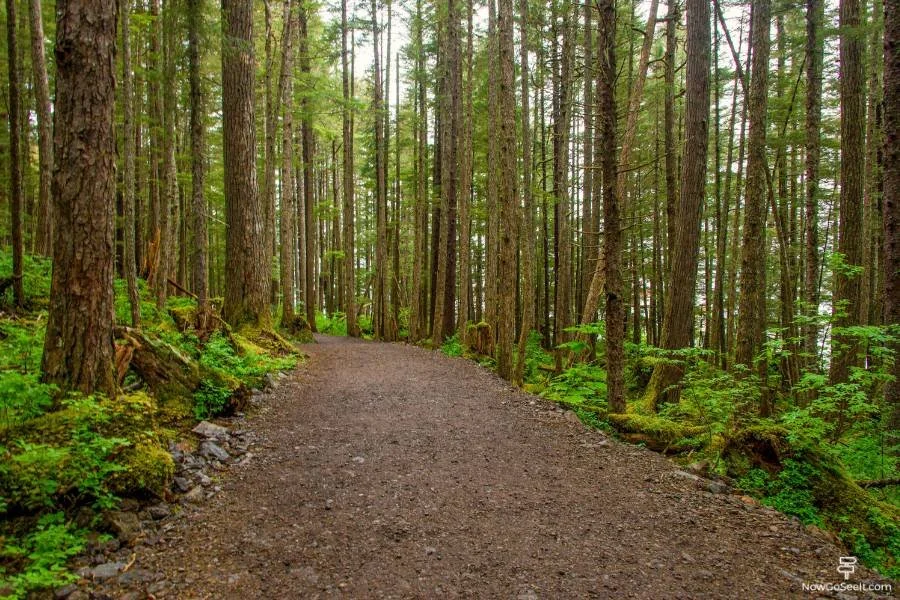 A short coastal-forest loop near the Adventure Center delivers eagle spotting and sea views, a quick win among things to do Icy Strait Point Alaska. Stay left at the merge to continue toward Wilderness Landing if you want to connect hikes with eateries and shops.
