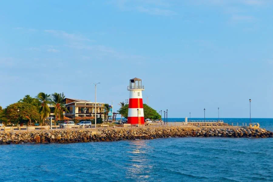 Puntarenas is a bustling port city with a long beachfront promenade. The beach is known for its vibrant nightlife, seafood restaurants, and the historic Puntarenas Cathedral.